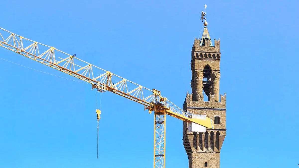• Der Kran war ursprünglich für Modernisierungs- und Erweiterungsarbeiten an der Uffizien-Galerie installiert worden.