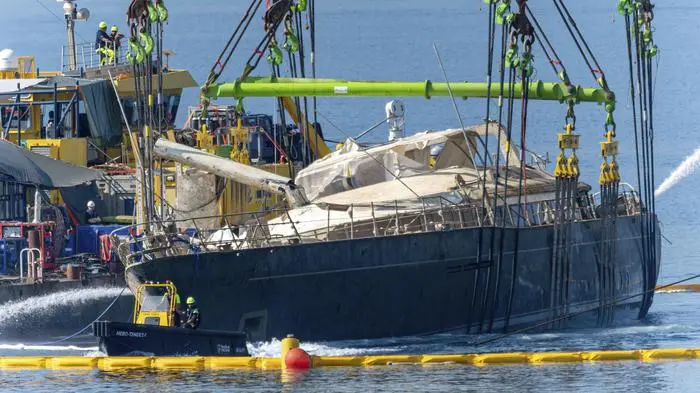 Die Megajacht wurde am Samstag von Schiffskränen an die Oberfläche gebracht. Das Boot war vor fast einem Jahr untergegangen, der Vorfall forderte sieben Todesopfer.
