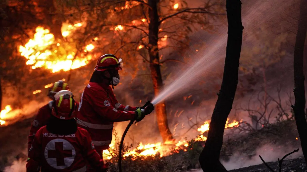 Griechische Feuerwehr im Kampf gegen Dutzende Brände