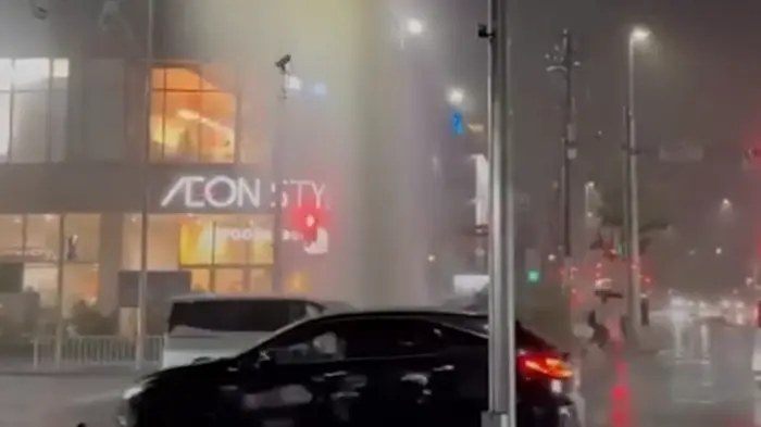 Heftige Regenfälle sind am Donnerstag über Tokio und benachbarte Regionen niedergegangen. In Yokohama hielt die Kanalisation dem Wasserdruck nicht stand. Wasserfontänen schossen meterhoch in die Luft.