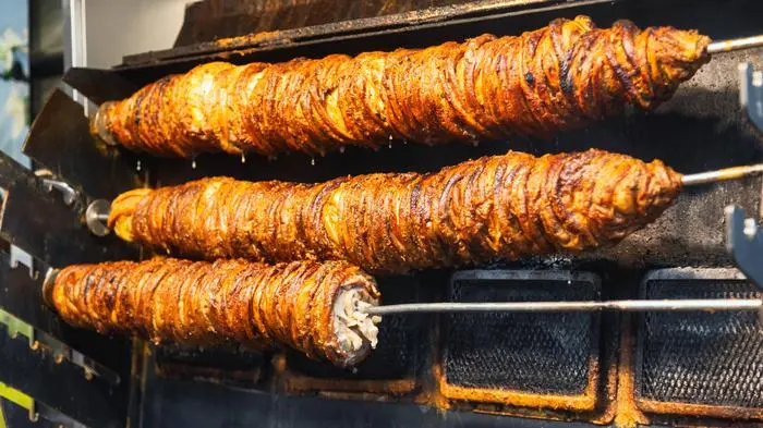 Kokorec-Spieße in einem Streetfood-Stand in der Türkei | Die Familie aus Hamburg aß unter anderem Kokorec (Symbolfoto)