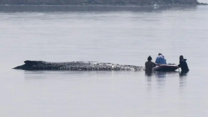 Der gestrandete Buckelwal liegt in einer Bucht der Ostseeinsel Poel