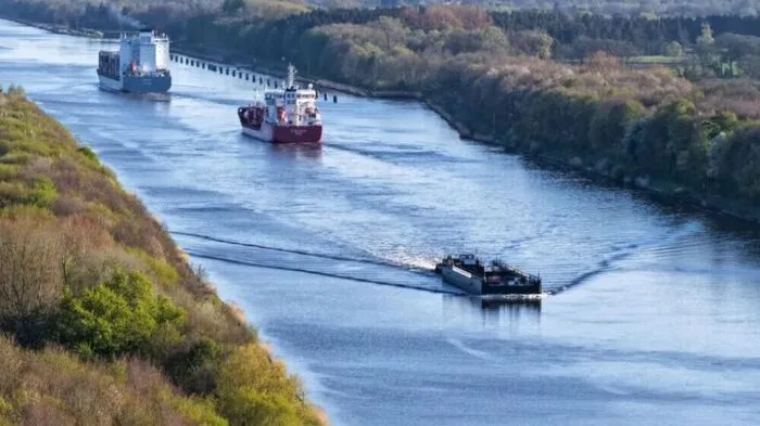 • Der Lastkahn wird voraussichtlich bis Sonntag über den Nord-Ostsee-Kanal in die Wismarbucht gelangen.