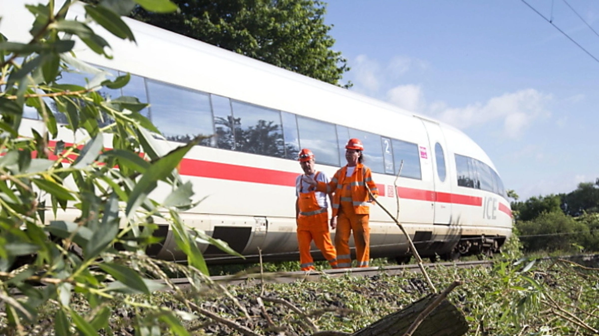 Oberleitungen wickelten sich beim Zusammenprall mit einem umgestürzten Baum in Hessen um den Zug. Die Reisende mussten sieben Stunden im Zug ausharren, bis die Kabel geerdet werden konnten.