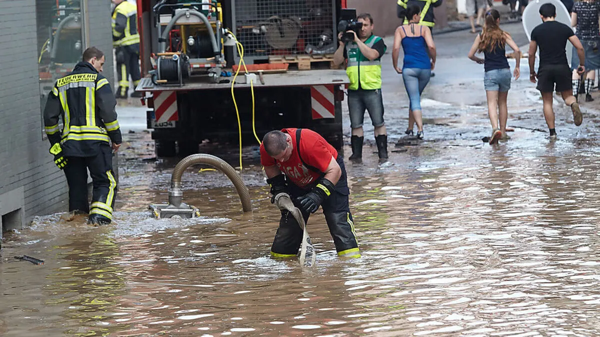 Starker Regen und Gewitter haben eine Kleinstadt in Rheinland-Pfalz überflutet. Im niedersächsischen Scheeßel musste das "Hurricane"-Festival unterbrochen werden.