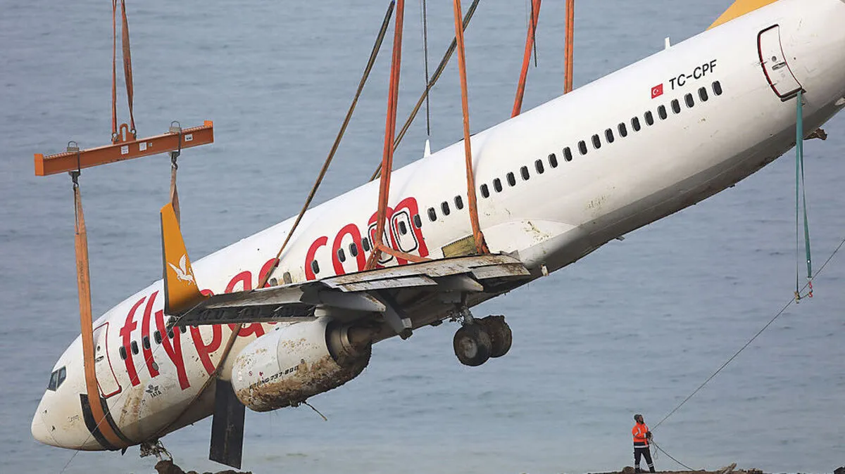 Fast ins Meer gerutschtes Flugzeug geborgen