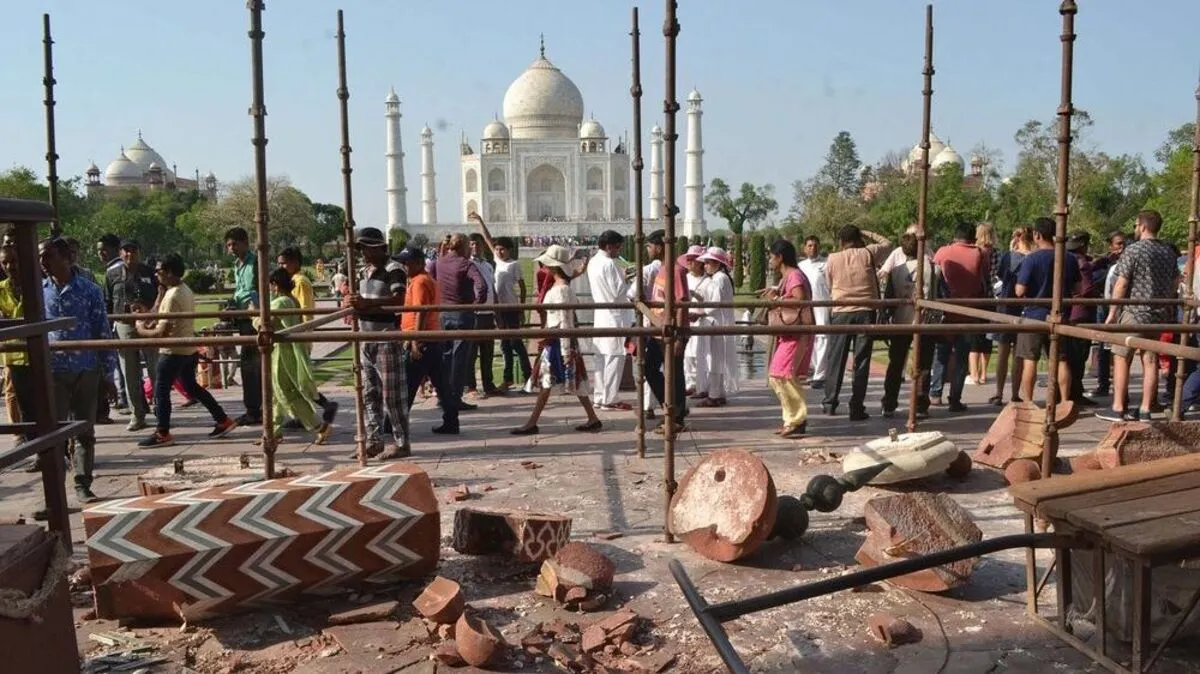 Minarette an den Eingängen des berühmten Mausoleums sind umgestürzt.
