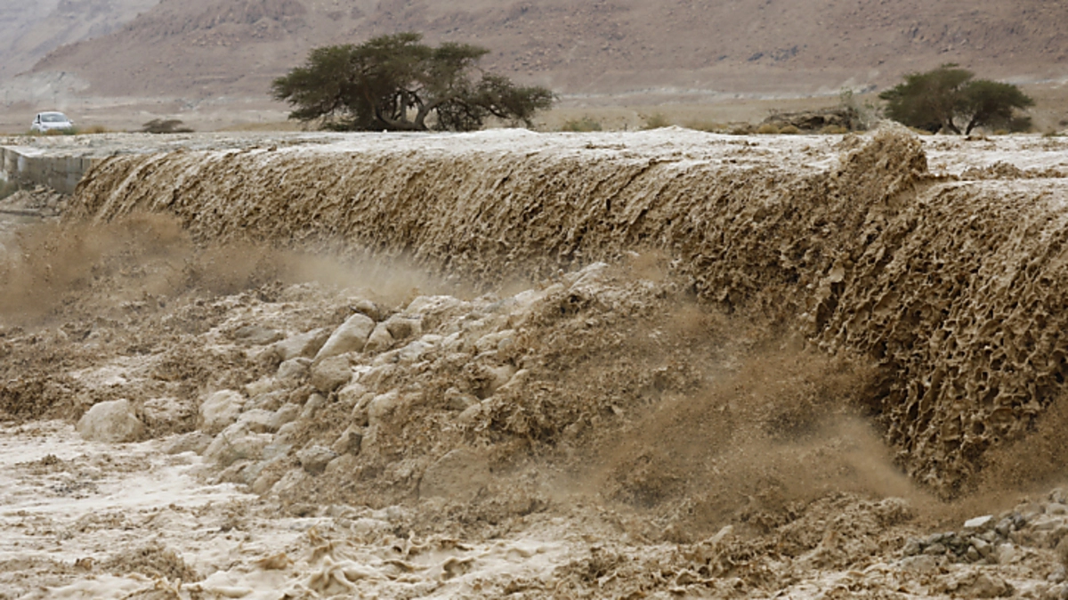 Eine Gruppe von 25 Teenagern im Alter von 17 und 18 Jahren ist am Donnerstag bei einem Ausflug in der Nähe des Toten Meeres von Wassermassen mitgerissen worden.