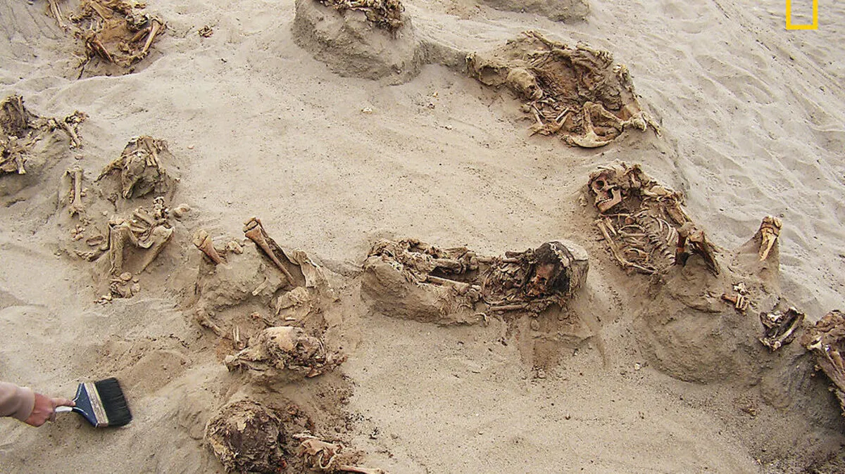 In einem Massengrab im Norden Perus haben Archäologen aus Peru und den USA Knochenreste von mehr als 140 Kindern gefunden. Viele der gefundenen Skelette wiesen Schnitte am Brustbein auf.