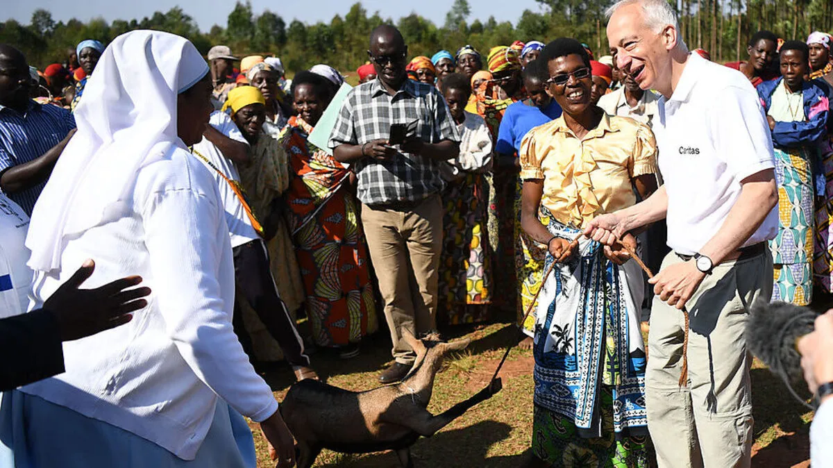Bei einer farbenfrohen Übergabe beschenkte Caritas-Präsident Michael Landau Witwen in Burundi mit einer Ziege, die gleichzeitig der Versöhnung dient.