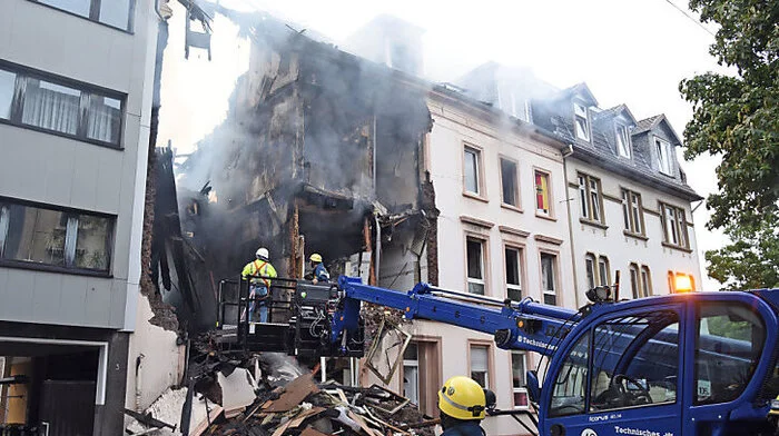 Ein großer Teil des Hauses mit drei Etagen und einem Dachgeschoß wurde regelrecht weggesprengt. Ursache ist unklar.