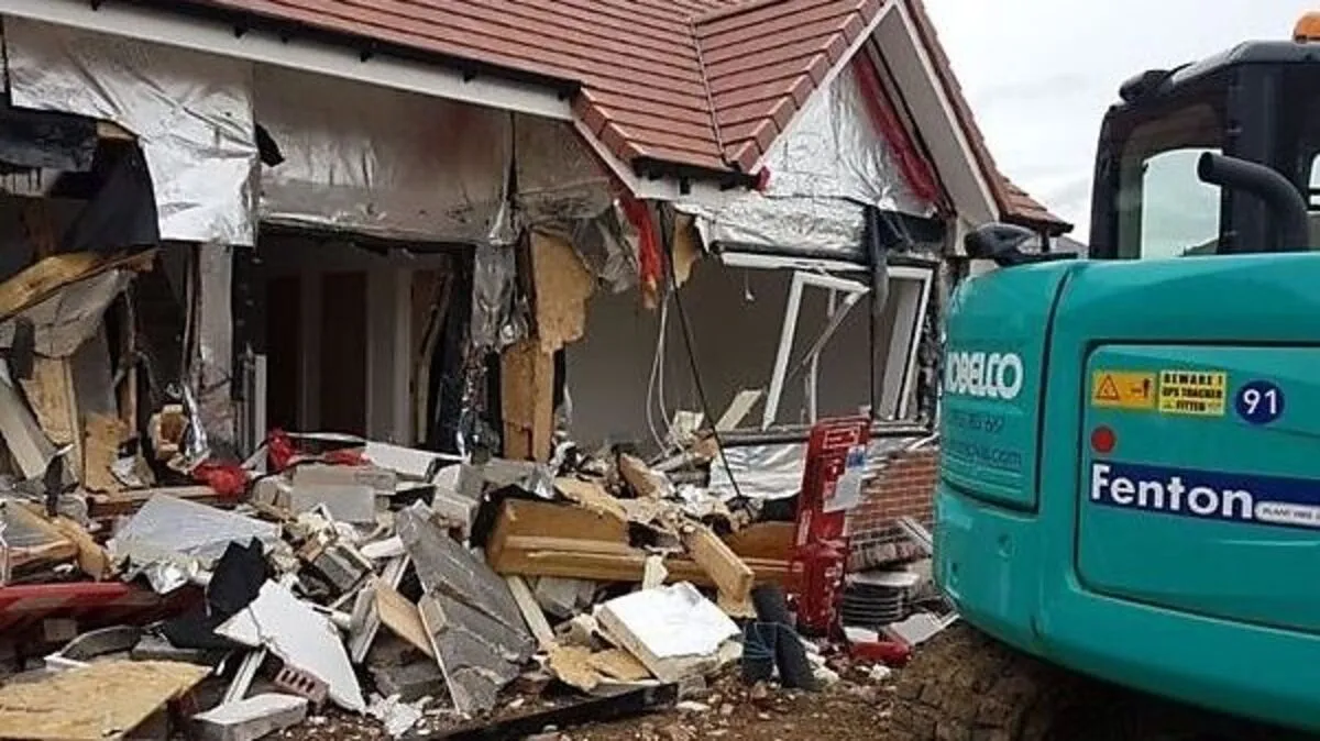 Bauarbeiter zerstört mit Bagger fünf nagelneue Häuser