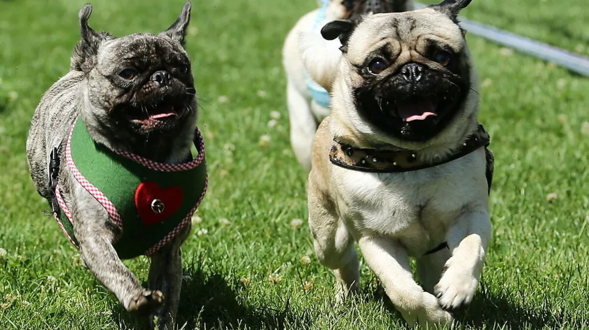 70 schnelle Möpse rannten in Berlin um die Wette.