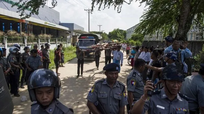 Vor der Textilfabrik am Rande der Hauptstadt Rangun, in der auch der deutsche Diskonter Lidl fertigen lässt, wurden demnach am Montag 30 Frauen angegriffen, die dort nach einem Streik für ihre Wiedereinstellung demonstrierten.