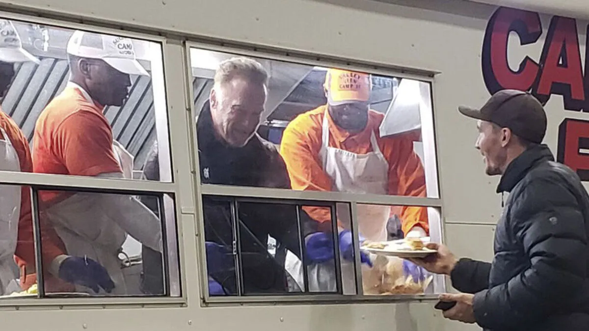Schwarzenegger packte selbst mit an und teilte Frühstück aus