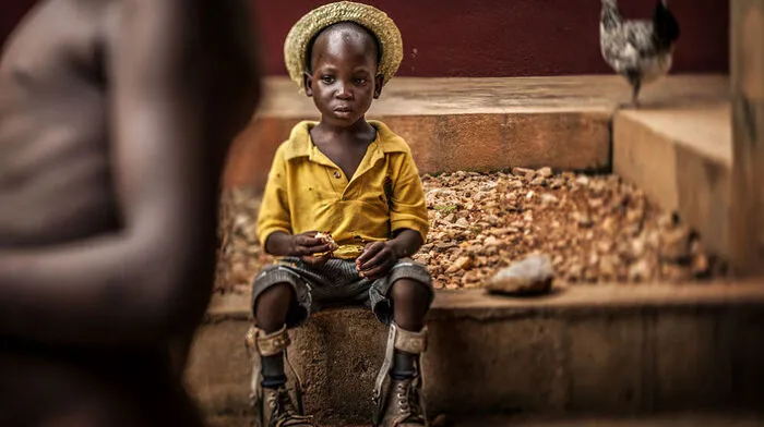 Das Bild zeigt einen gehbehinderten Buben aus Togo. In Westafrika werden behinderte Kinder nicht selten von ihren Familien verstoßen oder sogar misshandelt.