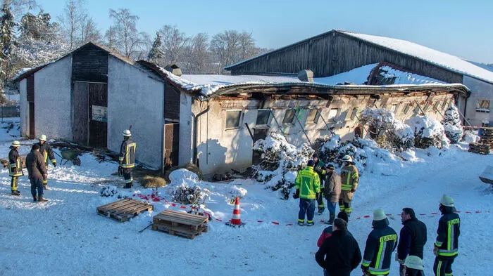 Im bayrischen Pilsting sind nach dem Einsturz eines Stalldaches mehrere Tiere unter den Trümmern eingeschlossen. Ob sie gerettet werden können, ist fraglich.