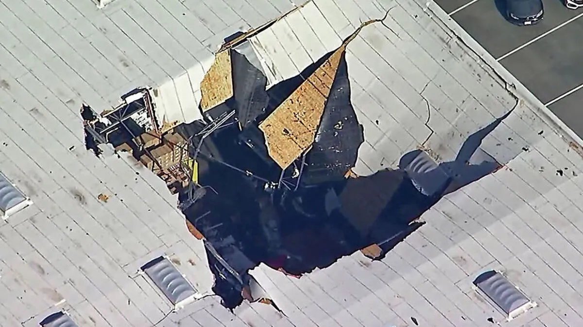 In Kalfiornien ist ein Kampfjet in eine Lagerhalle gestürzt. Der Pilot schaffte den Absprung.