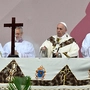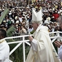 Vor der Messe am Fuße eines Berges über der Hauptstadt Port Louis wurde der Papst von den Menschen begeistert mit Palmzweigen in den Händen begrüßt.