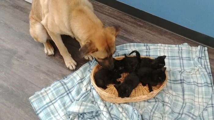 Eine Passantin hatte die eingeschneite Hündin den Angaben zufolge am Straßenrand gesehen und bei genauerem Hinschauen auch noch die fünf Katzenbabys entdeckt.