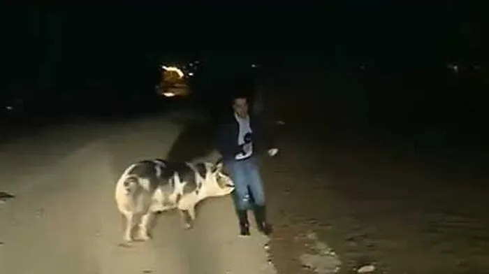 Reporter wird bei Liveübertragung von Schwein verfolgt