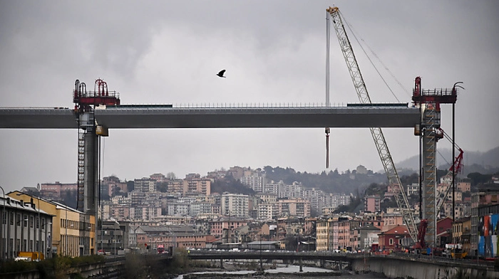 In Genua wird dieser Tage die Struktur für die neue Autobahnbrücke fertig.