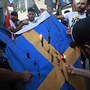 Frau stürmt Koranverbrennung in Stockholm mit Feuerlöscher