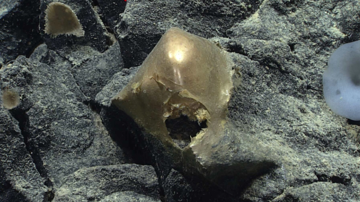 Toter Schwamm, Koralle, Hülle eines (außerirdischen) Eis oder etwas ganz anderes? Das auf dem Meeresgrund des Pazifiks gefundene gold glänzende Objekt sorgt für Rätselraten.