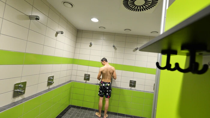 Mit Duschen im Hallenbad spart ein Schweizer Geld. Sujetbild