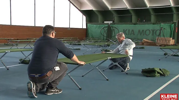 Das Klinikum Klagenfurt bereitet sich auf mögliche Kapazitäts-Engpässe vor. Am Montag hat man begonnen die Tennishalle am Klinikumgelände, angrenzend an die St. Veiterstraße, zu einem Lazarett umzubauen. Vorgesehen ist das Lazarett für Covid-19-Patienten die einen leichteren Krankheitsverlauf haben. Zunächst werden die 120 Feldbetten aufgestellt.