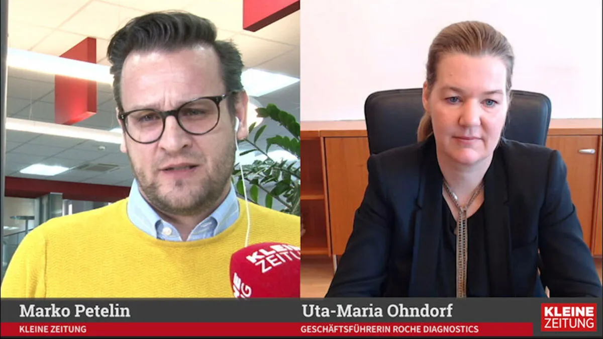 Uta-Maria Ohndorf ist Geschäftsführerin von Roche Diagnostics in Österreich. Ihr Unternehmen hat einen Schnelltest auf Basis der PCR-Methode entwickelt. Im Kleinetv-Interview erklärt sie die Testverfahren und deren Unterschiede.