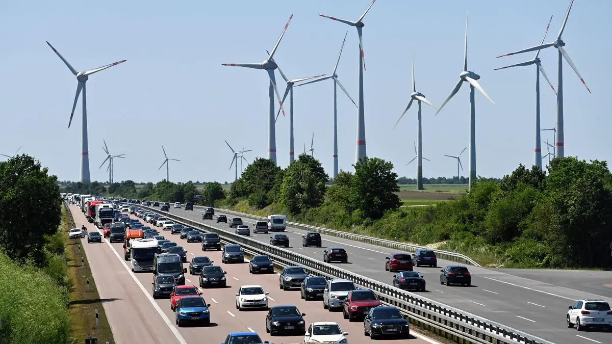 News Bilder des Tages Windraeder bei Weissenfels in Sachsen-Anhalt entlang der Autobahn A 9.Dichter Verkehr,Stau. Windpark,Windrad,Windkraft,Windkraftrad. Ausbau der Windkraft. *** Windraeder near Weissenfels in Saxony Anhalt along the A 9 freeway Dichter Verkehr,Stau Windpark,Windrad,Wind power,Windkraftrad expansion of wind power