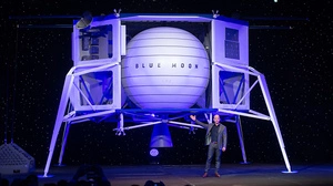 Mond-Landegerät ''Blue Moon'' Amazon-Chef Jeff Bezos will den Mond erobern "Es ist ein unglaubliches Gefährt, und es wird zum Mond fliegen", sagte der Multimilliardär Jeff Bezos bei der Präsentation von "Blue Moon" in Washington. Mond-Landegerät ''Blue Moon''