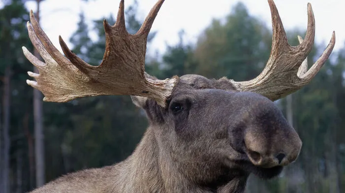 PKW konnte nicht mehr stoppen und rammte einen kapitalen Elchbullen auf einer deutscher Autobahn. Vermutlich stammt das Tier aus Tschechien und war auf der Suche nach einem Weibchen.