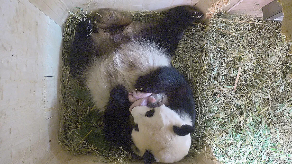 Die Pandazwillinge im Tiergarten Schönbrunn sind ein Mädchen und ein Bub. Das ist mittlerweile - einen Monat nach der Geburt - zu erkennen. Die beiden Jungtiere entwickeln sich gut und können auch schon kurz alleine in der Wurfbox bleiben.