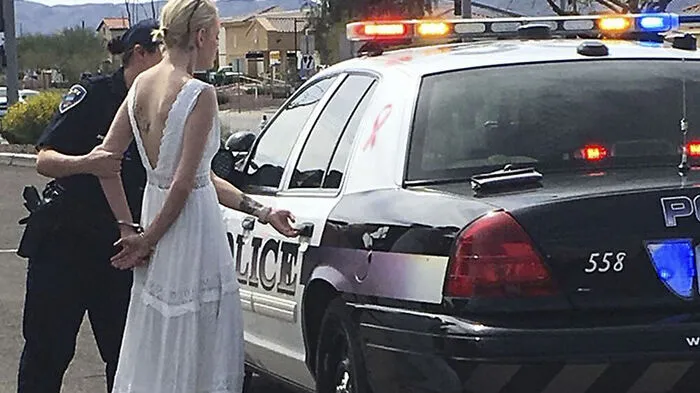 Der Weg zur eigenen Hochzeit endete für eine Autofahrerin in weißem Brautkleid in Arizona am Polizeirevier.