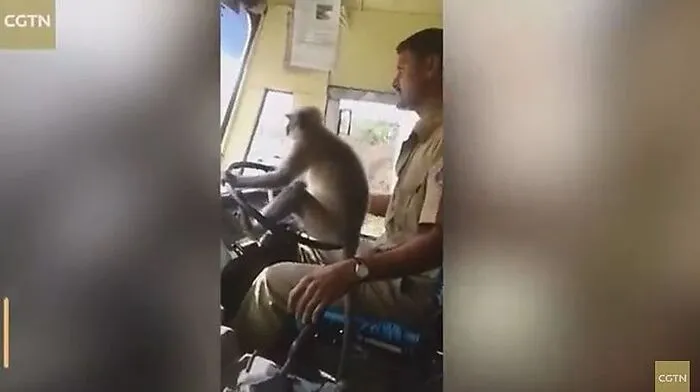 Busfahrer in Indien lässt Affen auf Lenkrad fahren