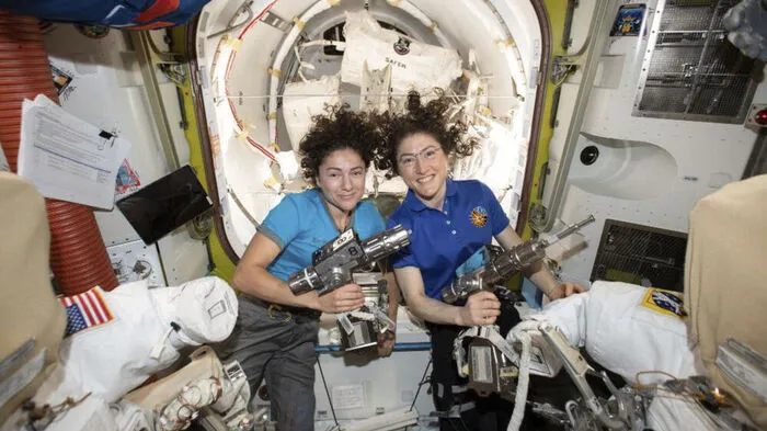 Die US-Astronautinnen Christina Koch und Jessica Meir reparierten bei einem historischen Außeneinsatz erfolgreich einen kaputten Stromregler. Zunächst hatte die Nasa nicht genug Raumanzüge für sie auf Lager gehabt.