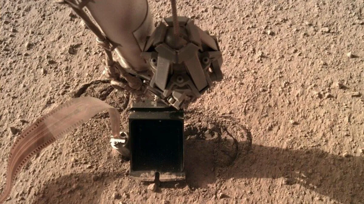 Das als Maulwurf bezeichnete Gerät HP3 soll den Wärmestrom im Inneren des Roten Planeten messen und dafür fünf Meter tief in den Boden eindringen. Es steckte aber mehr als ein halbes Jahr lang in nur 35 Zentimetern Tiefe fest.