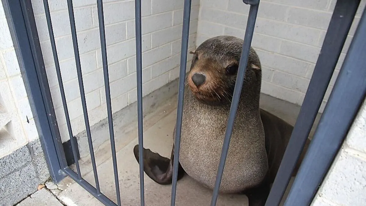Ausgerechnet auf der Toilette eines Friedhofs hat eine Australierin unerwartet Leben entdeckt: Ein 120 Kilo schwerer Seehund war dort eingeschlafen.