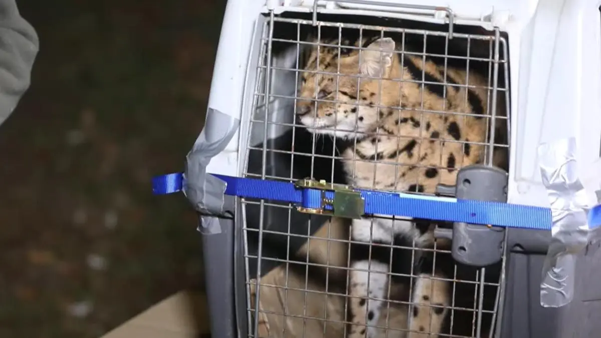 Daraufhin holte man fachkundige Hilfe: Aus Slavonski Brod reiste Tierarzt Branimir Reindl an. Der Veterinär erkannte sofort, dass es sich bei dem Tier um einen weiblichen Serval, eine Wildkatze aus der afrikanischen Savanne, handelte. Er lockte die Raubkatze mit Hackfleisch an und konnte so das Tier ohne Betäubung in einer Transportbox einfangen: „Ich ging davon aus, dass sie zahm war, aber sie überraschte mich wirklich. Sie roch an meiner Hand und dem Essen in meiner Hand und mit ein wenig Überredung betrat sie ohne Murren den Käfig. Sie versuchte nicht ein einziges Mal, mich anzugreifen. Sie knurrte, aber sie griff nicht an.“