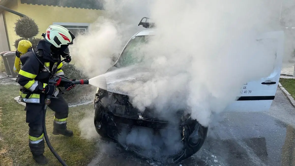 Totalschaden entstand an einem Klein-Lkw eines Villachers (55), der in Fürnitz vor einem Wohnhaus abgestellt war. Der Besitzer führte auf seinem Grundstück gerade Arbeiten durch, als er den Brand wahrnahm. Er versuchte, den Firmenwagen mit einem Handfeuerlöscher zu löschen. Dann schob er das Fahrzeug mit seinem Traktor aus dem Gefahrenbereich und konnte so ein Übergreifen des Feuers auf das Wohnhaus verhindern.