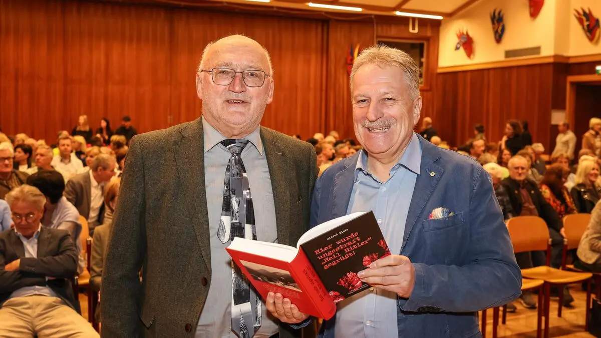 Buchpräsentation von Historiker Alfred Elste (rechts) mit Wilhelm Wadl, Präsident des Geschichtsvereins für Kärnten