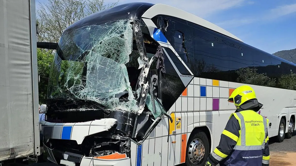 Donnerstag kurz nach elf Uhr wurde die Hauptfeuerwache Villach gemeinsam mit der Freiwilligen Feuerwehr Vassach und Töplitsch zu einem Verkehrsunfall auf die Südautobahn im Bereich des Autobahnknotens Villach alarmiert. Laut ersten Meldungen waren zwei Reisebusse und ein Lkw in den Unfall verwickelt.