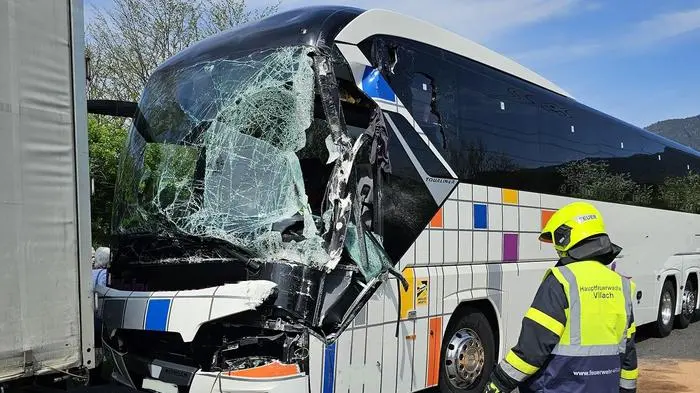 „Vor Ort stellte sich heraus, dass ein Reisebus auf einen anderen aufgefahren war und fast noch einen Lkw touchiert hätte“, berichtet Martin Regenfelder, Einsatzleiter der Hauptfeuerwache Villach. Glücklicherweise waren keine Personen eingeklemmt.