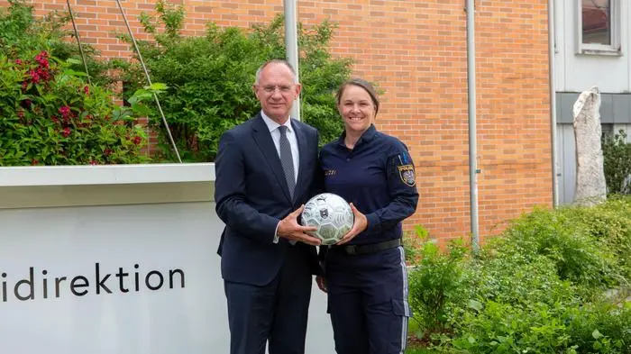 Fußball und Polizei, das passt bei Katrin Horn perfekt zusammen. Die Ex-Bundesligaspielerin (FC St. Veit und Carinthians Soccer Women) ist „Kapitänin“ von Österreichs Polizeiteam, das die deutschen Kollegen bei der Fußball-Europameisterschaft unterstützt. Am Samstag ging es für die insgesamt 43 Polizistinnen und Polizisten los. Zuerst zur Ausbildung nach Bamberg in Bayern, dann in die Spielorte von Österreichs Fußballnationalteam, nach Düsseldorf und Berlin. „Ich freue mich sehr darauf, auch wenn so ein Großereignis eine besondere Herausforderung ist“, sagt die 42-Jährige.
