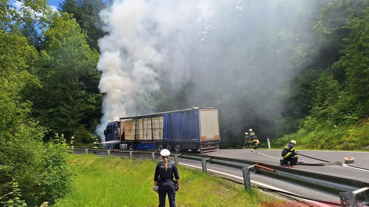 Am Montag gegen 14.15 Uhr lenkte ein 52-jähriger Kraftfahrer aus Villach einen Sattelzug beladen mit Schnittholz auf der Weißensee Straße B 87 in Richtung Weißensee. Im Gemeindegebiet von Weißensee angekommen, hörte der Lenker plötzlich einen lauten Knall und die Motorkontrolllampe leuchtete auf.