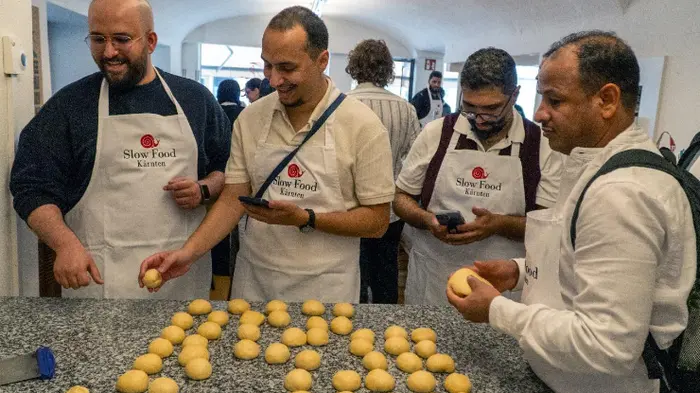 Die Vorbilder für eine zukunftsorientierte Entwicklung in den Saudi-Arabischen Regionen fanden die Gäste in Kärnten, wo seit 2016 das Programm der Slow Food Travel-Regionen entwickelt und als Vorzeigemodell für ländliche Regionen umgesetzt wird. Auf ihrer viertägigen Reise durch Kärnten erhielten die Studienreiseteilnehmer Einblicke in die Arbeit der Slow Food Travel-Partnerbetriebe. Vom Reindlingbacken über Eismachen in Mittelkärnten, vom Besuch einer Fischzucht und über die Herstellung von Lebensmitteln aus Insekten im Lavanttal bis zu den Slow Food Erlebnissen am Aroniafeld im Gailtal, die Genussexplosion beim Edelgreissler in Kötschach und einer Sonderschifffahrt am Weissensee konnten die Mitglieder von Slow Food Saudi-Arabien bei den Kärntner Vorzeigebetrieben lernen. Die kulinarischen Höhepunkte bei speziellen Slow Food-Restaurants wie „Leiten“ in Klagenfurt, „Liegl am Hiegl“ in St. Peter, „Das Leonhard“ am Weissensee und im „Friesacherhof“ in Prebl rundeten das Slow Food-Programm in Kärnten ab.