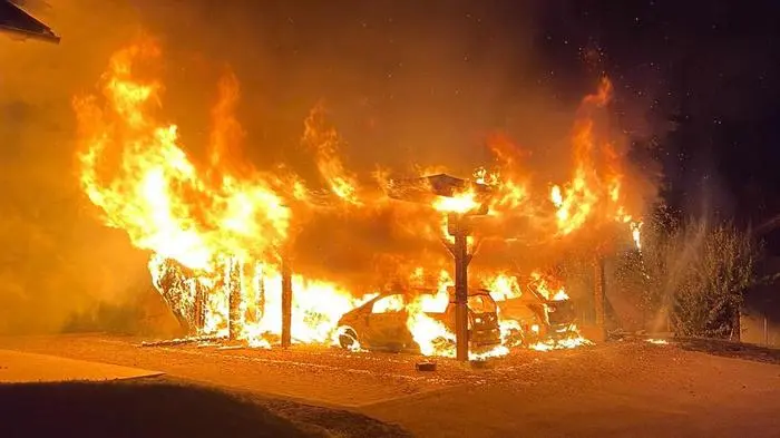 Aus bislang unbekannter Ursache brach in der Nacht auf Donnerstag gegen 2 Uhr in Faak am See bei einem Carport eines 53-jährigen Mannes ein Brand aus. Eine Nachbarin hatte das Feuer entdeckt, den Hausbesitzer geweckt und die Einsatzkräfte alarmiert. Beim Eintreffen der Feuerwehren stand der Carport samt zwei darin befindlicher Fahrzeuge bereits in Vollbrand.
