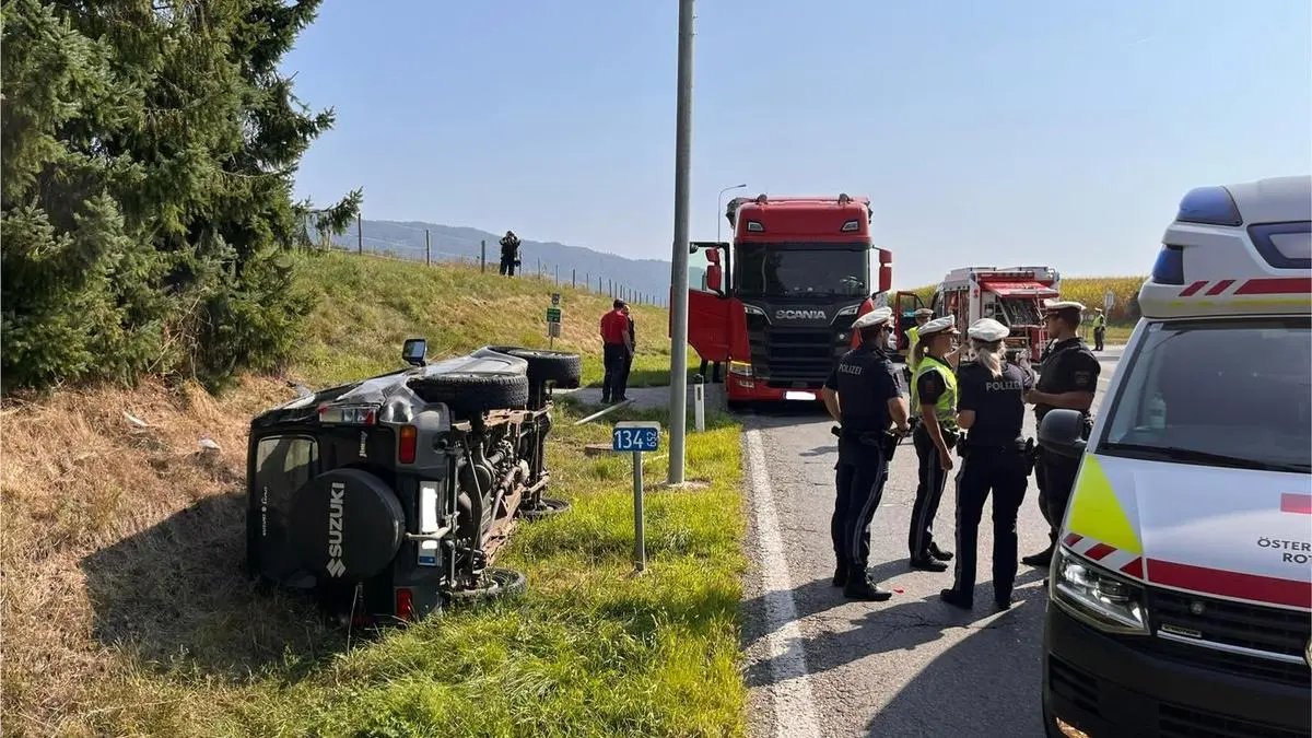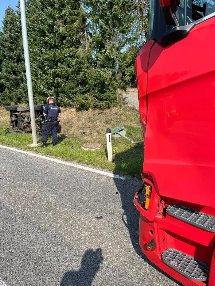 Mittwoch gegen 10 Uhr lenkte ein 66-jähriger Klagenfurter seinen Pkw auf der Tainacher Landesstraße L 115 aus Richtung Tainach kommend. An der Kreuzung mit der Packer Bundesstraße wollte er nach links in Richtung Klagenfurt abbiegen. Dabei übersah er ein Sattelfahrzeug, gelenkt von einem 50-jährigen Mann aus dem Bezirk Völkermarkt. Das Sattelfahrzeug touchierte den Pkw links am Heck, wodurch sich das Fahrzeug um die eigene Achse drehte und sich hochkant mehrmals überschlug. Der Pkw blieb an der Böschung nördlich der Bundesstraße seitlich liegen.